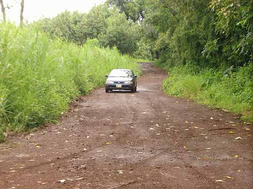Hana-Highway unter die Raeder. Die Strasse fuehrt an steilen