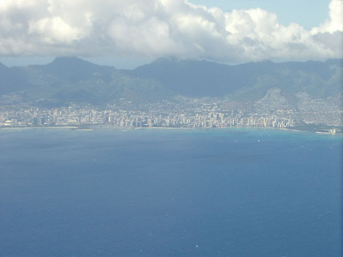 nach Honolulu. Der Flug dauerte nur 30 Minuten, so flogen wir recht tief