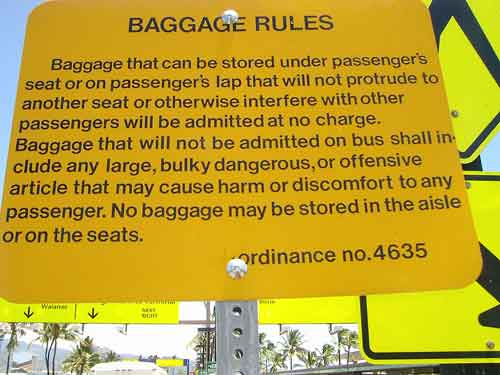 Gepaeckstuecke ist auf den Bussen in Oahu verboten. Nachmittags reichte