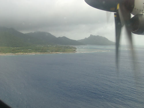 Von Papeete erreicht man Huahine entweder mit dem Flugzeug oder mit dem Schiff. Wir haben uns fuer das Flugzeug entschieden. Das Schiff ist zwar billiger, aber nicht immer sehr zuverlaessig. Verspaetungen stehen an der Tagesordnung und Reservationen sind nur fuer Kabinen moeglich. Wir flogen mit Air Tahiti, welche etwa drei bis fuenf Fluege taeglich anbietet. Die Preise sind fair, gebucht kann auch via Internet werden. Speziell ist die erhoete Freigepaecklimite von 20 Kg (normal 10 Kg) fuer Passagiere mit internationalen Anschlussfluegen. Diese Limite erhaelt man automatisch bei Buchungen via Internet. Uebergepaeck wird mit ca. einem Euro pro Kilo berechnet. |