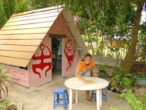 Der Camping Ariiura (keine Webseite, Tel. +689 68 85 20) ist die einzige vergleichsweise guenstige Unterkunft im Sueden der Insel. Ca. 25 CHF kostet ein Zeltstandplatz, fuer ca. 75 CHF gibt es ein Cabine (ca. drei Mal drei Meter Grundflaeche, Sandboden, kein Strom). Auf Tahiti waren wir im Backpacker "Chez Fifi" (keine Webseite, Tel. +689 82 63 30) einquartiert. Der sehr saubere Backpacker liegt in Gehdistanz zum Flughafen (ca. 200 Meter, am westlichen Ende des Terminals den steilen Weg von der Hauptsrasse weg) und bietet Dorms fuer ca. 25 CHF. Gaeste mit sehr viel Gepaeck werden auch mal mit dem Auto am Terminal abgeholt. |