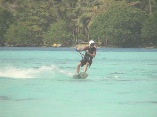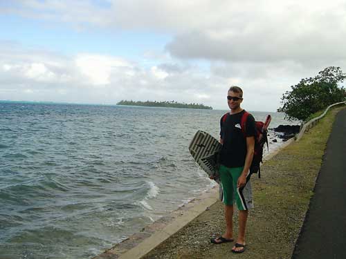 Gekitet haben wir in der ueberwiegend stehtiefen Lagune zwischen der Motu Araara und der Hauptinsel. Zum Beach (schmaler Sandstrand) gibt es dank einer archeologischen Sehenswuerdigkeit einen oeffentlichen Zugang. Der Passatwind weht sideshore konstant mit ca. 18 bis 20 Knoten, das Wasser ist absolut flach. Die Lagune ist mit Korallenkoepfen durchsetzt, welche vor allem bei Ebbe teilweise nur knapp unter der Wasseroberflaeche liegen. Leeseits der Motu Araara besteht ein Riffdurchgang, der von Surfern zum Wellenreiten genutzt wird. Leider liegt der Break in der Windabdeckung der Insel, so dass Kiten beim vorherrschenden Passatwind dort nicht moeglich ist. Regenfronten bringen dagegen Wind (und Regen) von Suedwest. An diesen Tagen kann mit groesseren Kites im Riffdurchgang gekitet werden. Beide Seiten eigenen sich mit dem Kite gleichermassen, rechts muss man sich gelegentlich die Welle mit Surfern teilen.Der Spot auf Tahiti ist Motu Martin, ca. 10 km oestlich von Papeete gelegen. Durch den extrem breiten Sandstrand, Sideshore-Wind und das Flachwasser ist das Gebiet auch anfaengertauglich. |