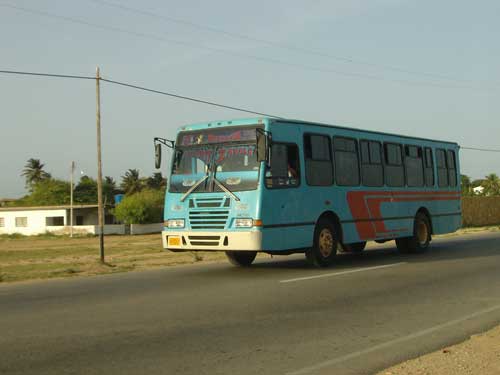 Bus mit etwa dreissig Sitzplaetzen und so vielen Stehplaetzen wie